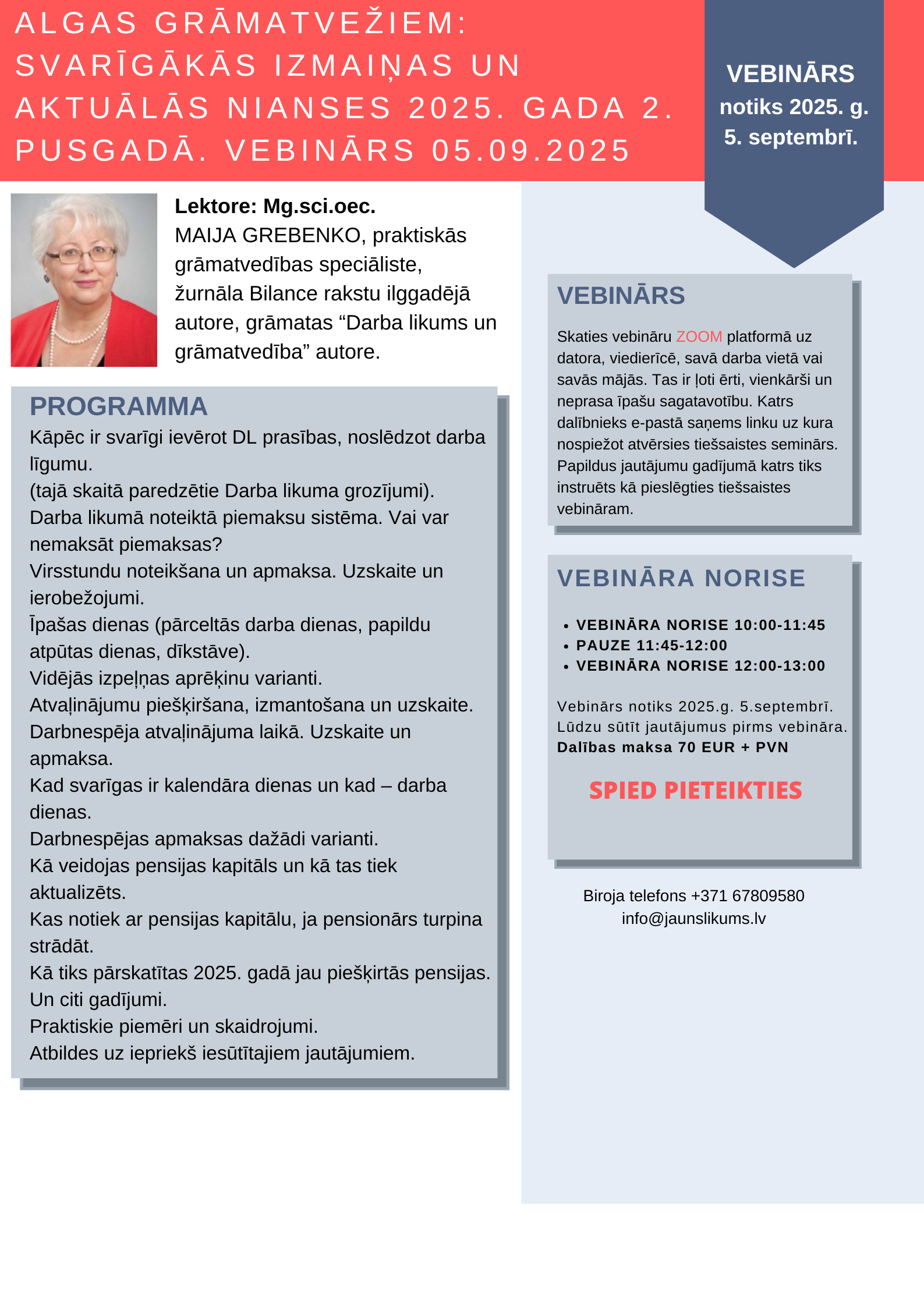 Algas grāmatvežiem: svarīgākās izmaiņas un aktuālās nianses 2025. gada 2. pusgadā. Vebinārs 05.09.2025
