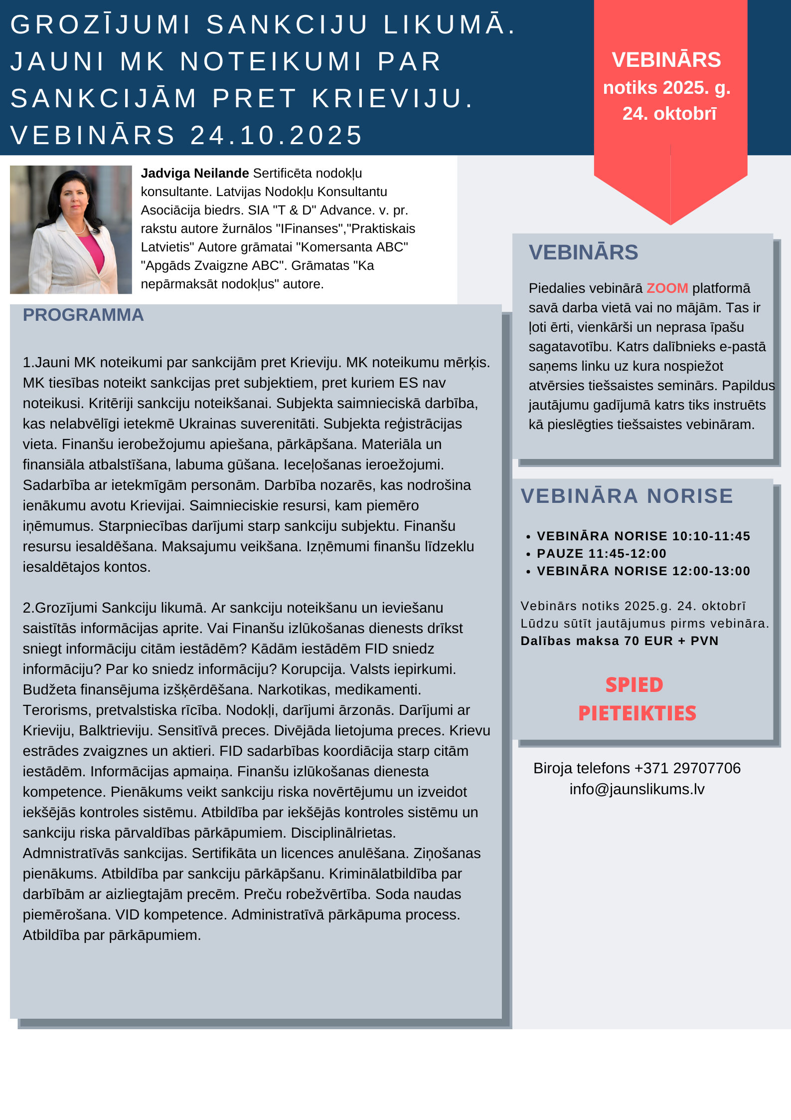 Grozījumi Sankciju likumā. Jauni MK noteikumi par sankcijām pret Krieviju. Vebinārs 24.10.2025